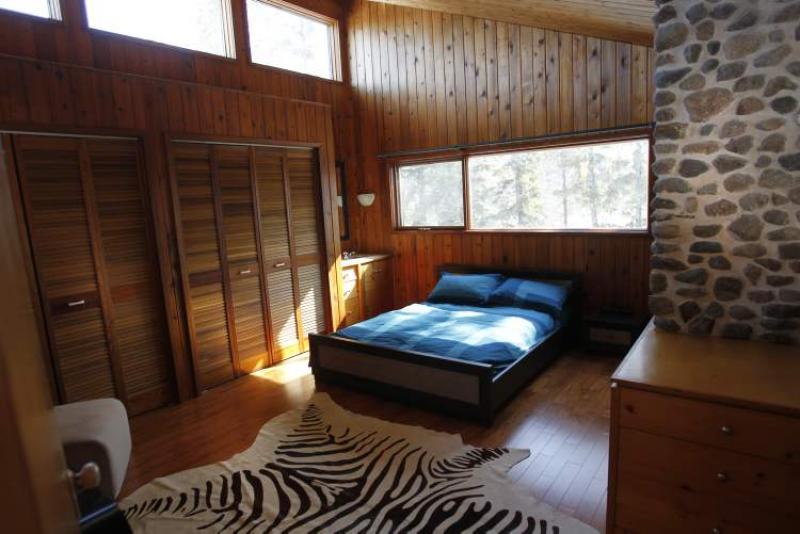 "At just over 15 feet by 13 feet, it's a nice size," said Thiessen. "And it not only overlooks the living room and river, but it also has an extension of the stone fireplace that's the focus of the room. It also has a built-in dresser, his/her closets -- and a view of the mature trees and river through a rear window. Exit the bedroom, and you've got the river view from the balcony."