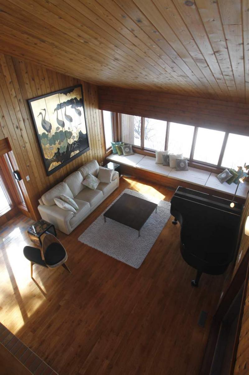 Not only does the bright blue Prairie sky hurt your eyes due to its azure-hued vibrance, but so, too, does the snow that surrounds the home, a 2,695-sq.-ft., two-storey red cedar residence that overlooks a serene stretch of the Red River in St. Andrews.