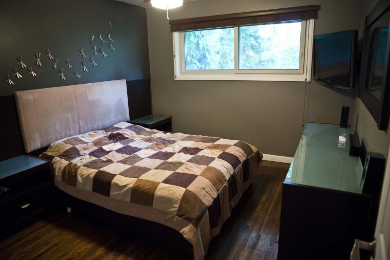 At the end of the hallway is the spacious master suite, which is not only notable for its surprising size, but for its view. "I love the huge window on its rear wall — it gives you a beautiful, private, treed view of the backyard," he says. "While you’re in the city, the view makes you feel like you’re out in the country."