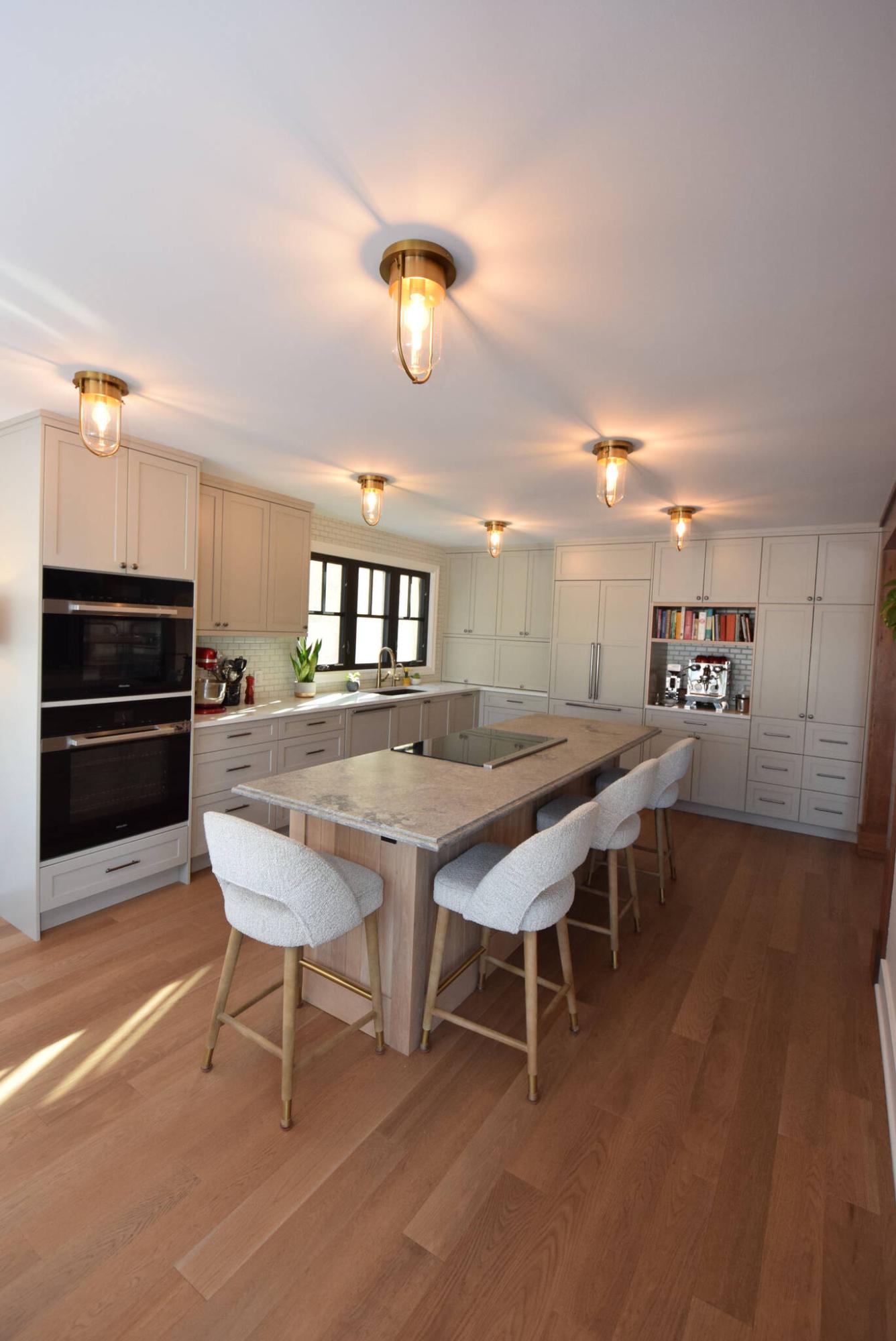 “The kitchen and dining room, as well as the primary bedroom and garage, were all added to the home,” says van den Broek. “The kitchen, which was designed by Rosehill Millwork, is a showstopper with an appliance garage, integrated fridge and cooktop, honed-quartz countertops and gorgeous custom cabinets.”