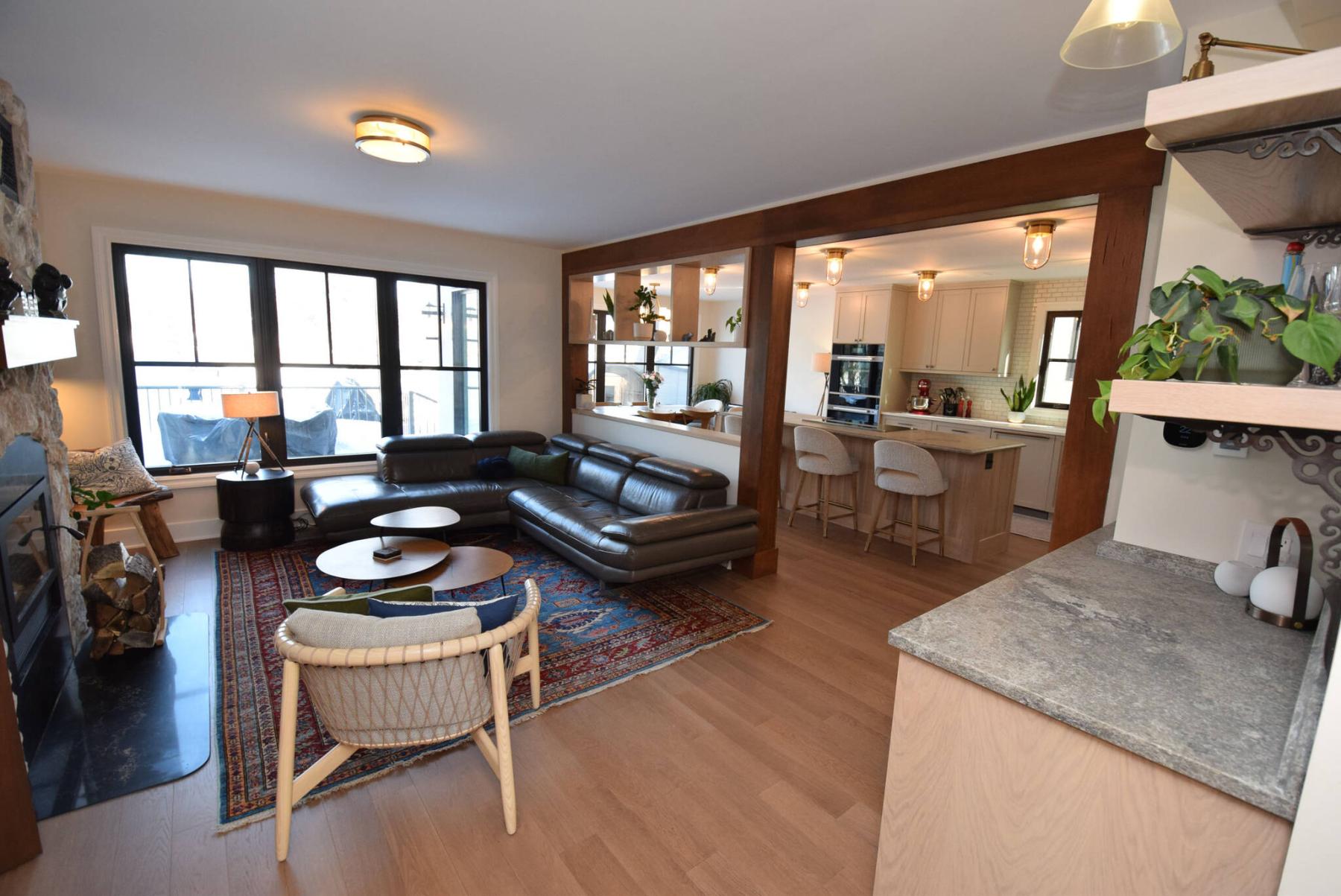 The fully re-engineered lower level — which holds a rec room, egress bedroom and full bathroom — then completes the residence in fresh, practical style.