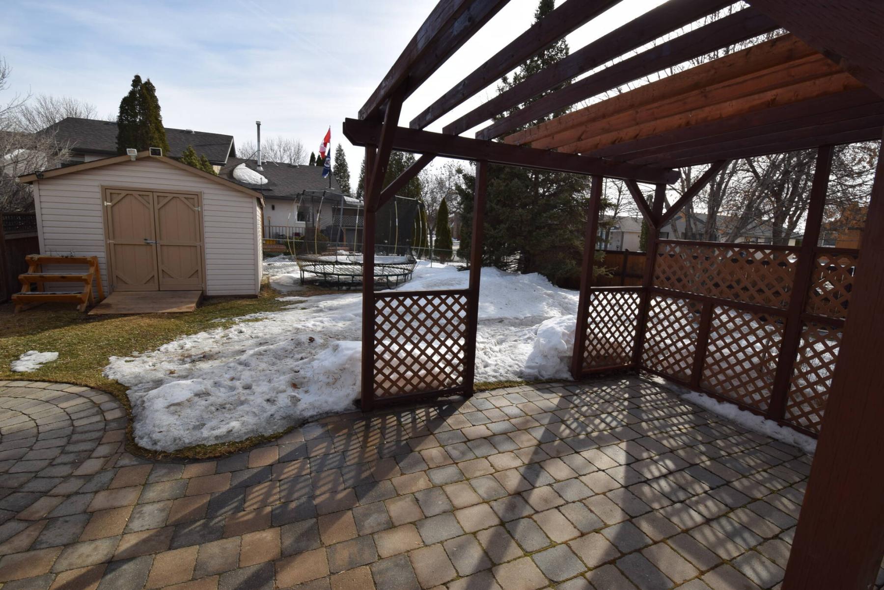 “There’s a large, fenced backyard with a beautiful patio made up of Roman pavers, as well as an included pergola. It also presently has a large shed for storage, but that could be replaced by a garage. Even if you put one in, there would still be lots of room left over for the kids to play.”