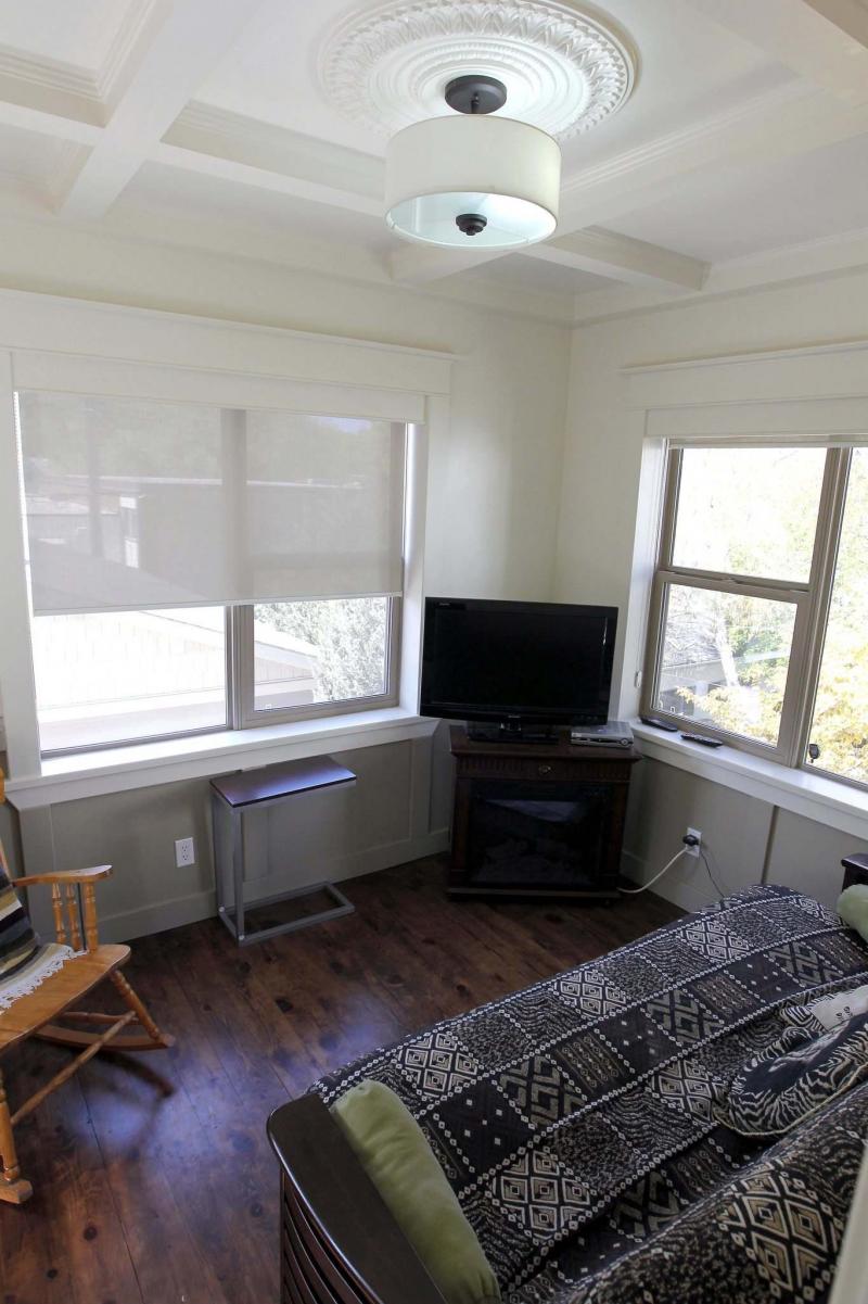 Then, there’s the remodelled main bath. "It’s a nice surprise with its heated tile floor, granite countertops, floating dual vanities and beautiful tempered glass/acrylic shower. It also has two transom windows set up high to let light in, while retaining privacy," he said.