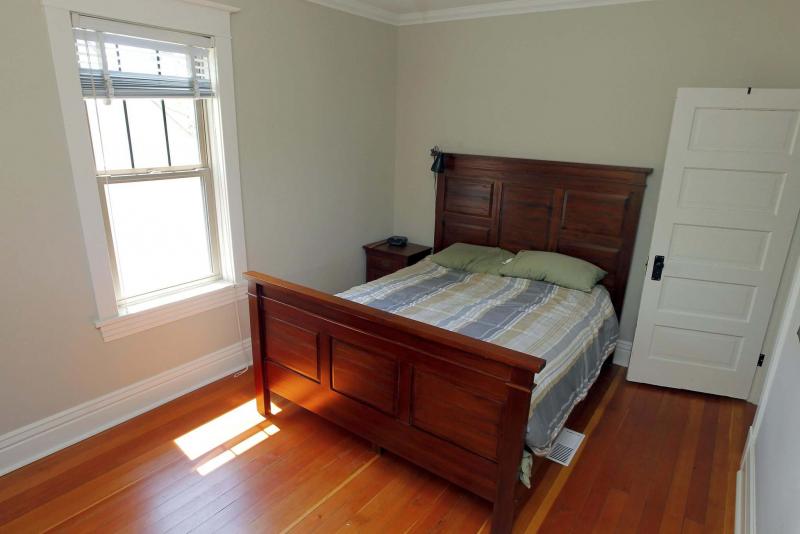 There are instances where some design features don’t need to be altered, and this home’s upper level is one of those instances. While turn-of-the-century homes aren’t always known for their efficient layouts, this second floor is an exception. "The landing area up here is actually big enough for you to stand and comfortably have a conversation. Then, all three bedrooms are a decent size considering the era of the home. They’re all quite big and come with decent closet space, and the (original) fir floors speak to the home’s original character," Bouvier said, noting there’s also a four-season sunroom at the end of the hall.