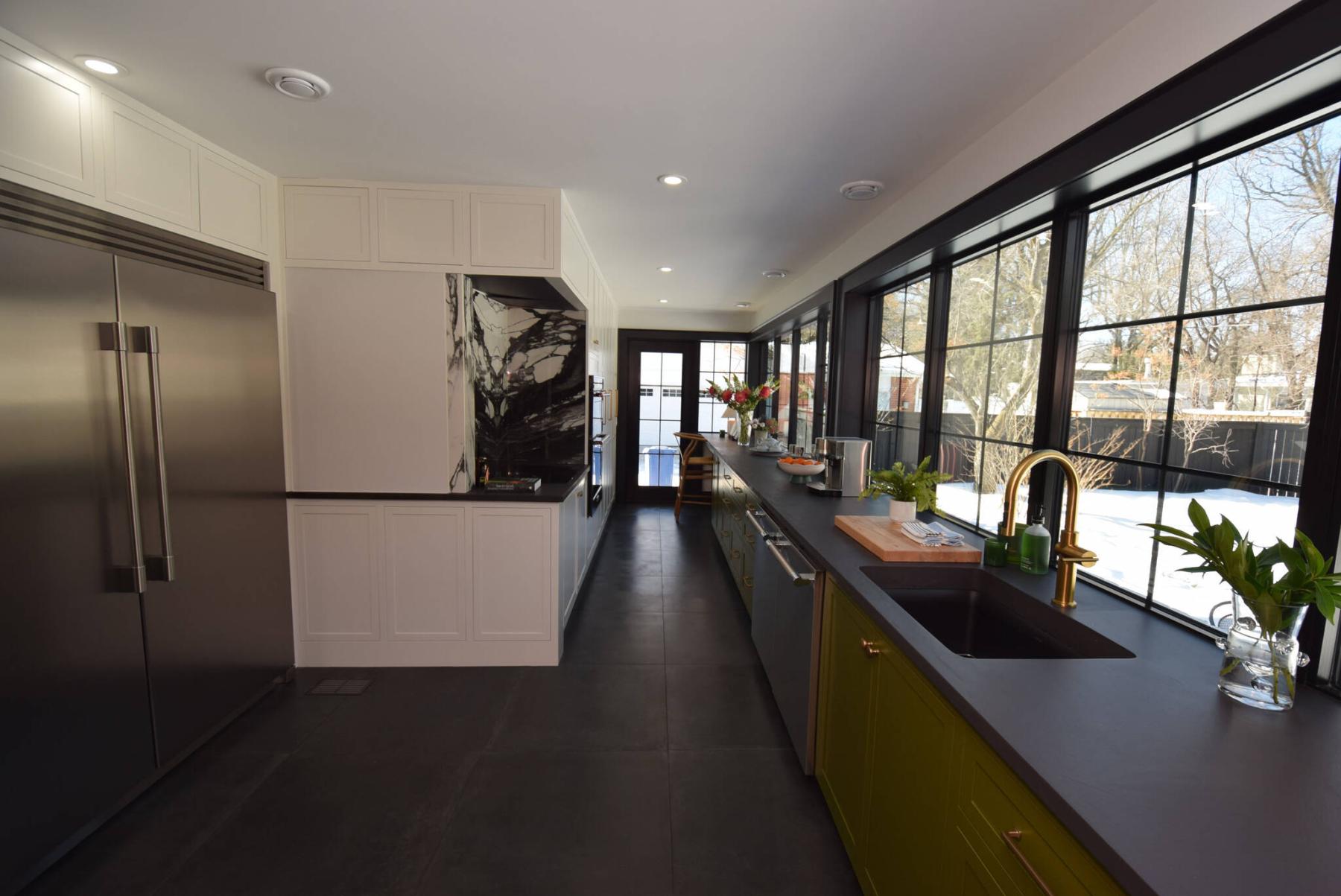 “Basically, the home is about 60 per cent new,” she says, noting the classic design has been remade to modern standards in key areas and expanded by about 1,000 sq. ft. “The exterior has a modern, linear look to it with huge windows and an amazing roofline. It really draws your eye from the street.”