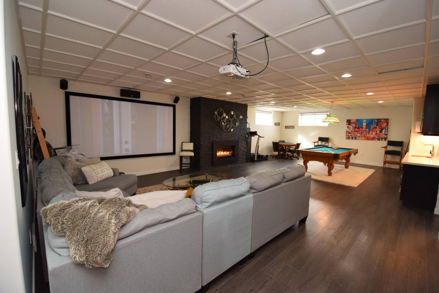 “It comes with a media area with 100-inch screen and projector that are included in the sale,” he says. “There’s another gas fireplace plus a games area and wet bar. Two huge windows next to the games area let in lots of natural light. There are also two more spacious bedrooms, a third full bath and there’s also tons of storage space.”