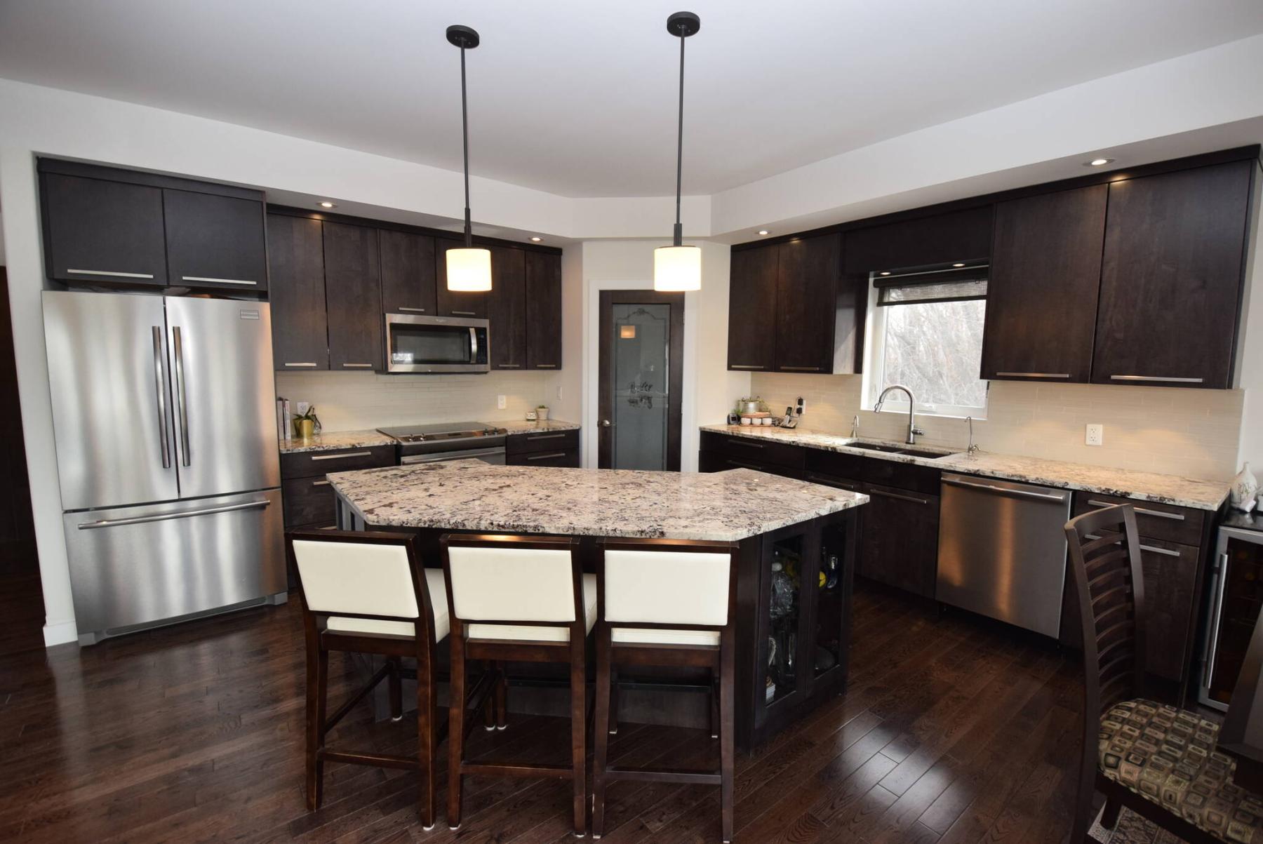“It’s a wonderful, user-friendly space that comes with a huge walk-in pantry, lots of maple cabinets, a granite island and countertops, Frigidaire Professional stainless appliances, and pendant and pot lights. The area is laid out perfectly for entertaining.”