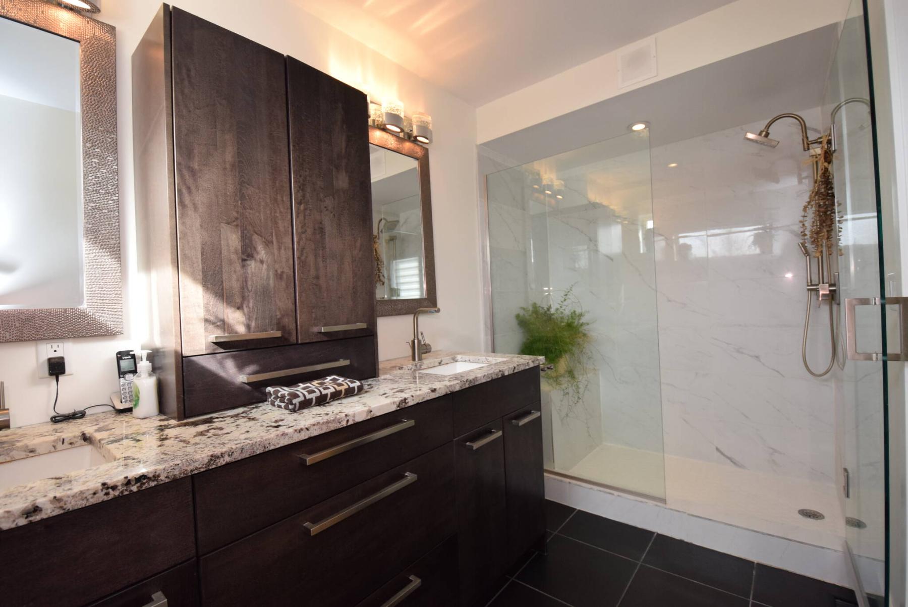Luxurious finishes give the spa-like ensuite an elegant, upscale feel.