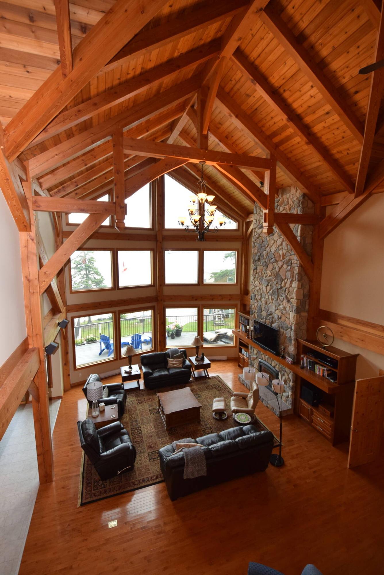 “Because this cottage is a timber frame structure, it took Cornerstone Homes two years to build. All the timbers were hand-cut and prefabricated, and then transported to the site. They were put together with dowels, which made for a structure that was very sturdy, and beautiful. Timber frame is truly an art form of building.”