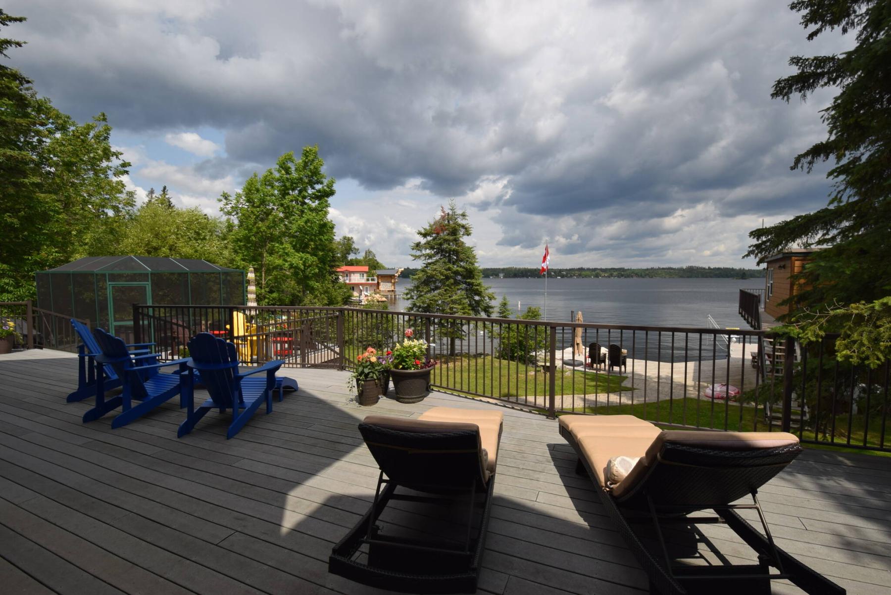 “A double wide doorway with solid core pine doors takes you into the primary bedroom, which pampers you with a three-way propane fireplace, open five-piece ensuite with huge whirlpool tub, oversized, tiled shower stall and big walk-in clothes closet,” he says. “A garden door on its rear wall leads out to a private deck that looks out over the lake.”
