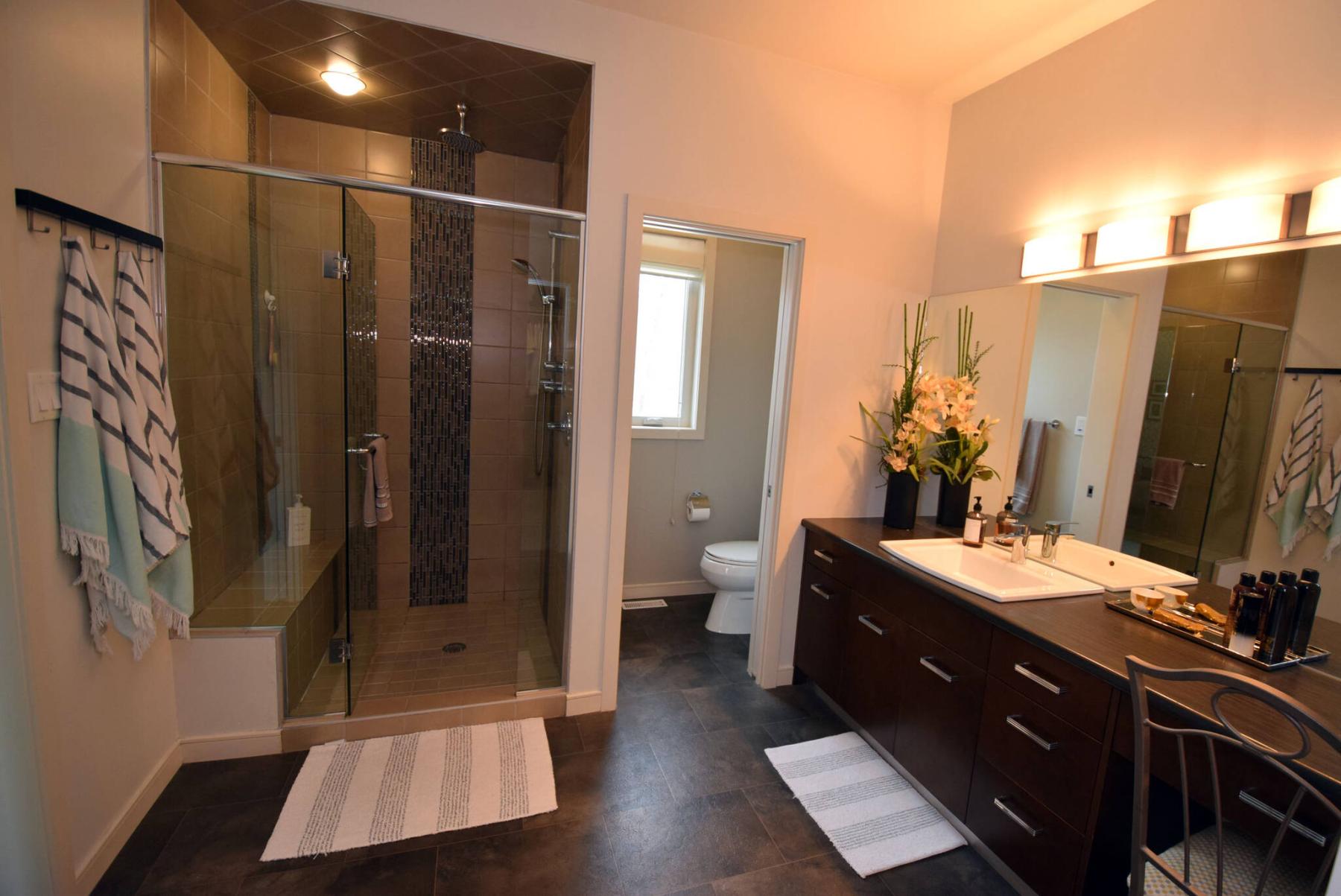 “It’s a private, serene space that has a huge window looking out onto the surrounding forest,” Arnason says. The walk-in closet is huge, and the ensuite has a spa-like feel to it with its amazing walk-in shower.”