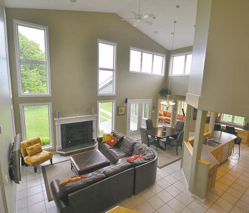 "Eight windows on the back wall -- including several that stretch up the wall toward the vaulted ceiling -- give you an amazing view of the lake. (They) let in an incredible amount of light, so it's bright inside even on the dullest of days," he said. "The living room is a gorgeous spot with the vaulted ceiling and a wood-burning fireplace with floor-to-ceiling windows on either side."
