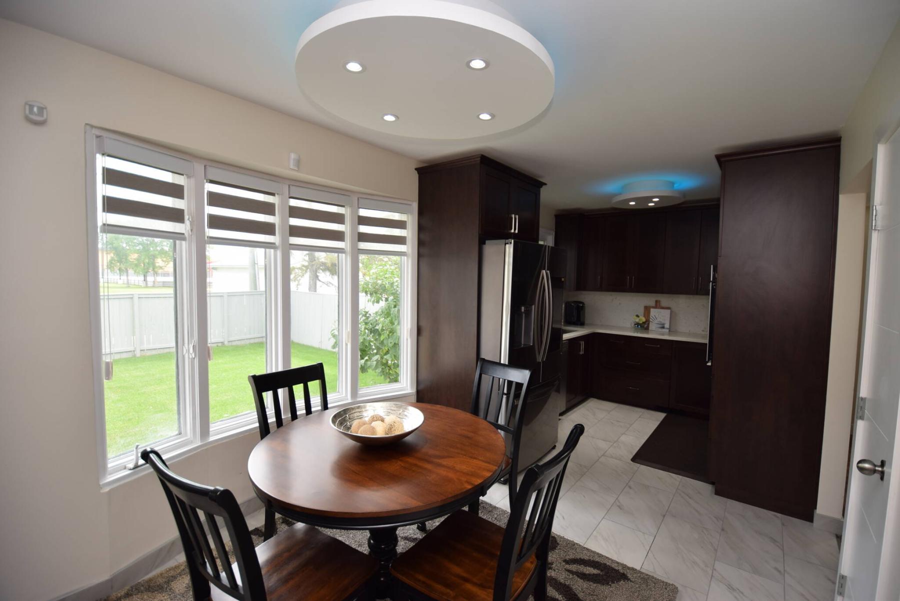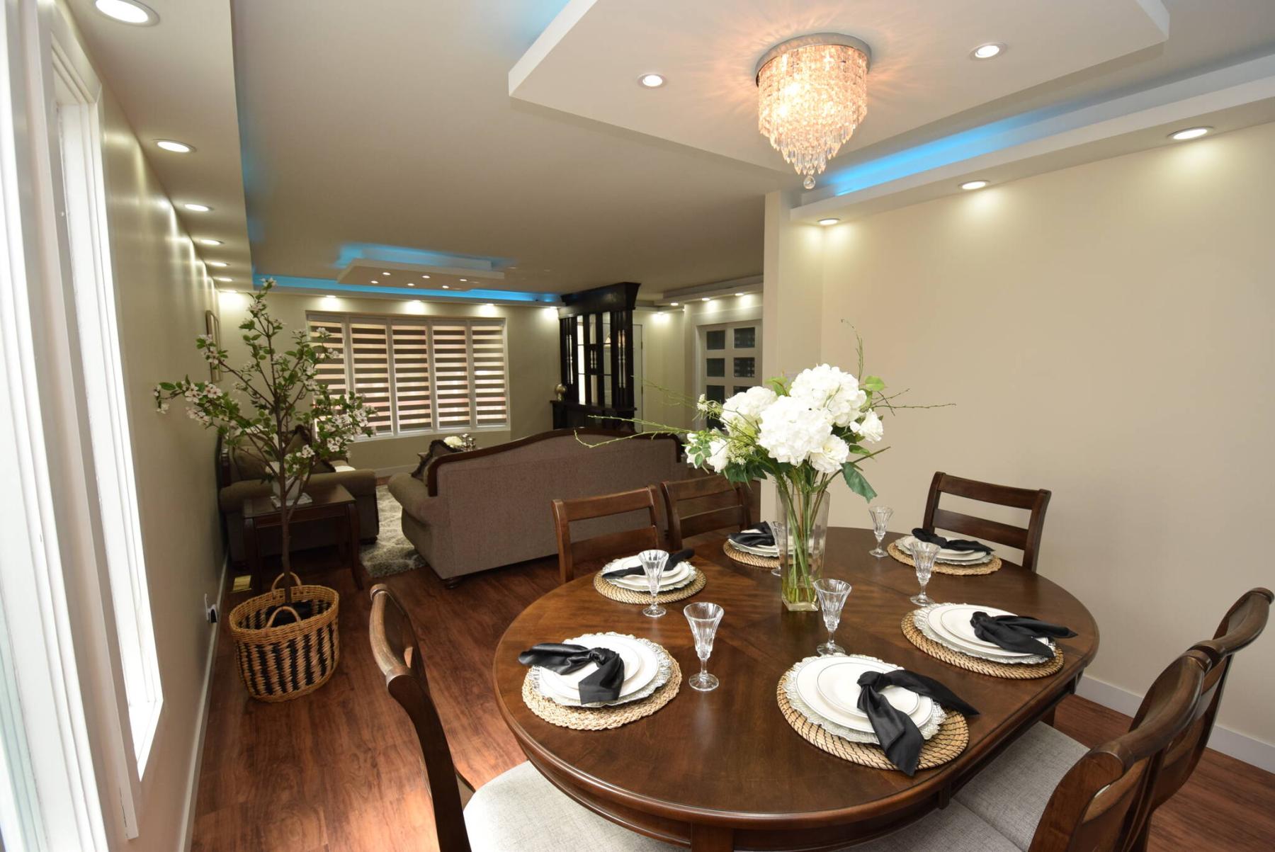 “The wow factor is amazing — the calming accent lighting in the living room, dining room and kitchen, as well as tons of pot lights in and around literally every space,” he says. “The living room is open and modern, while the dining room is elegant, a quality that’s enhanced by a gorgeous chandelier that hangs over the dining table surrounded by pot lights.”