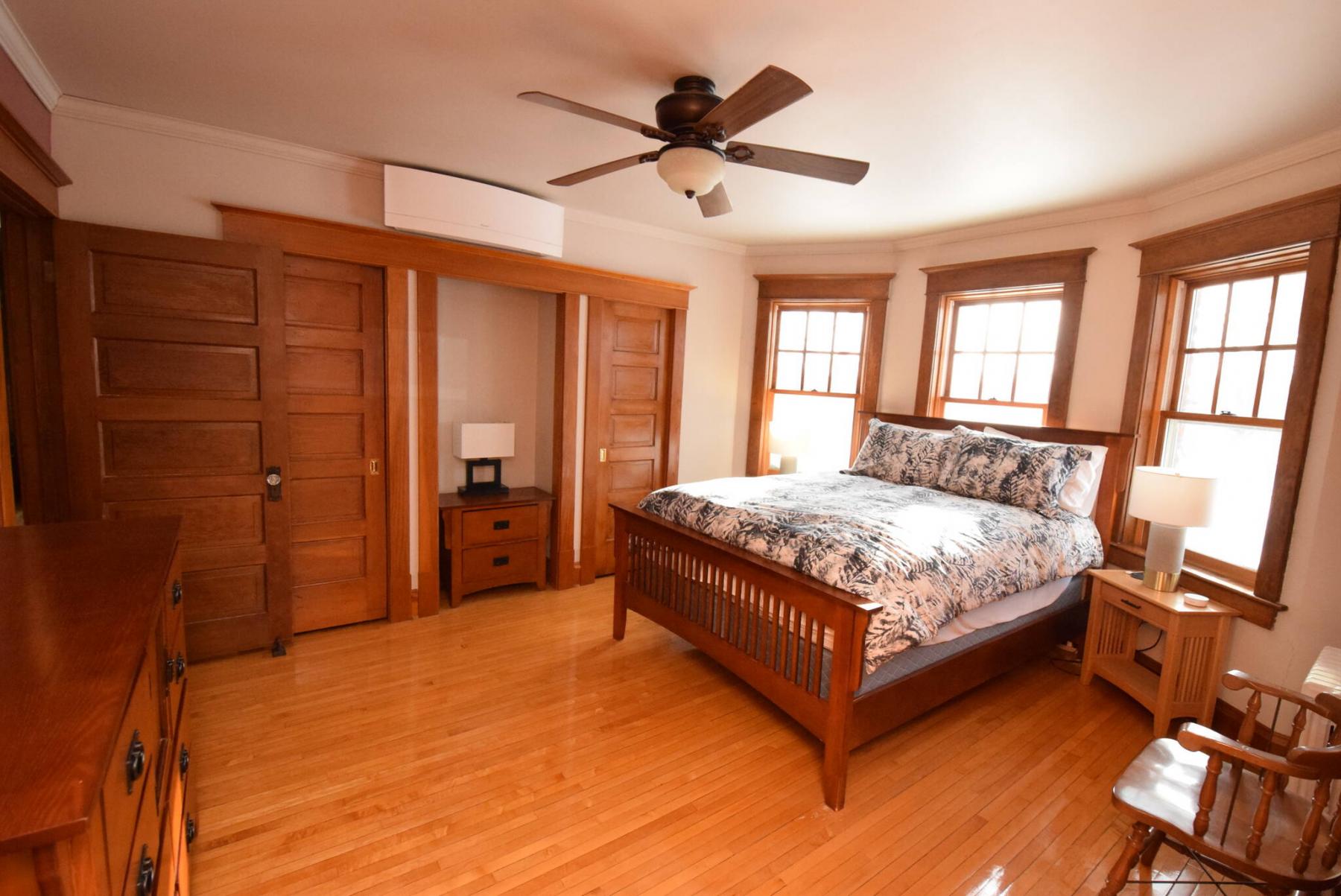 Take the original, hand-carved oak staircase up to the second floor, and you find a main bath with clawfoot tub and three oversized bedrooms, including a spectacular primary bedroom.