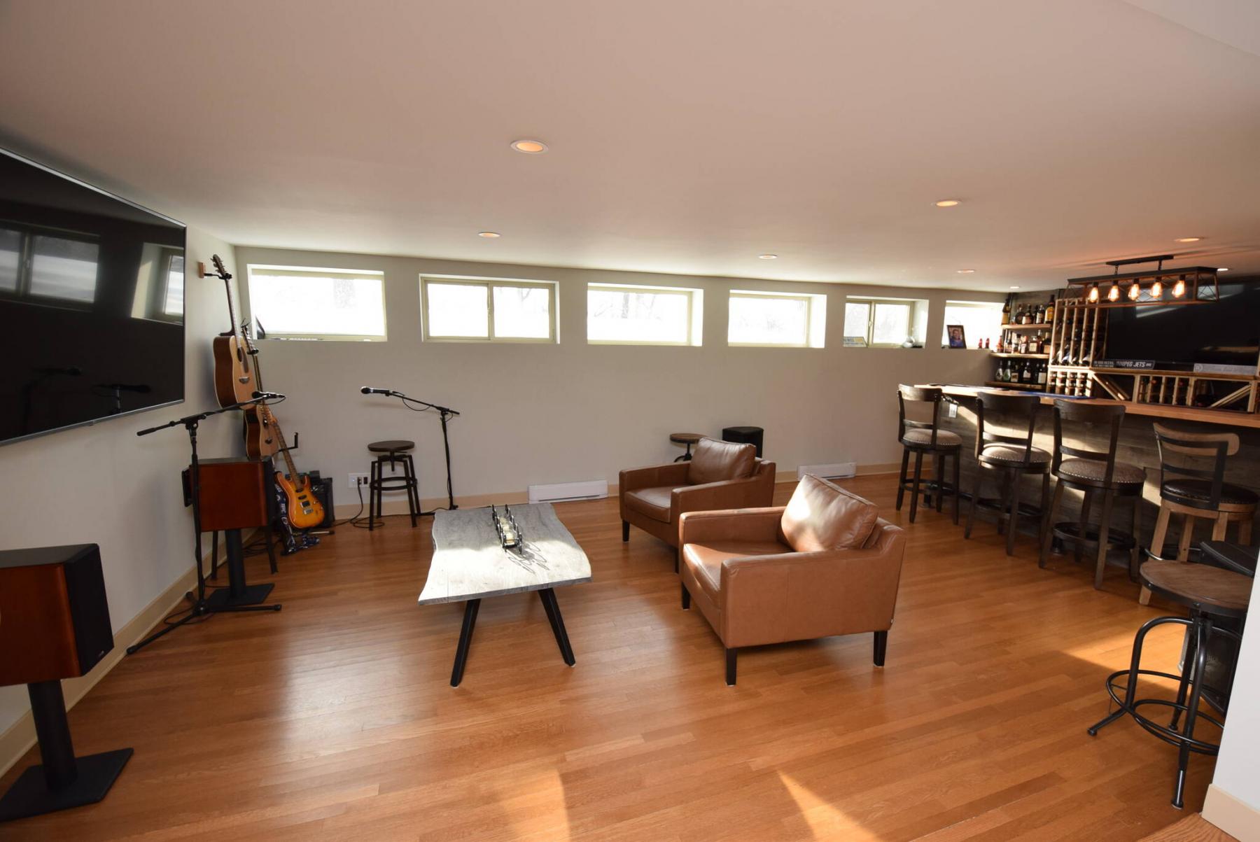 Finally, theres the fully finished lower level, which comes with an incredible rec room.
