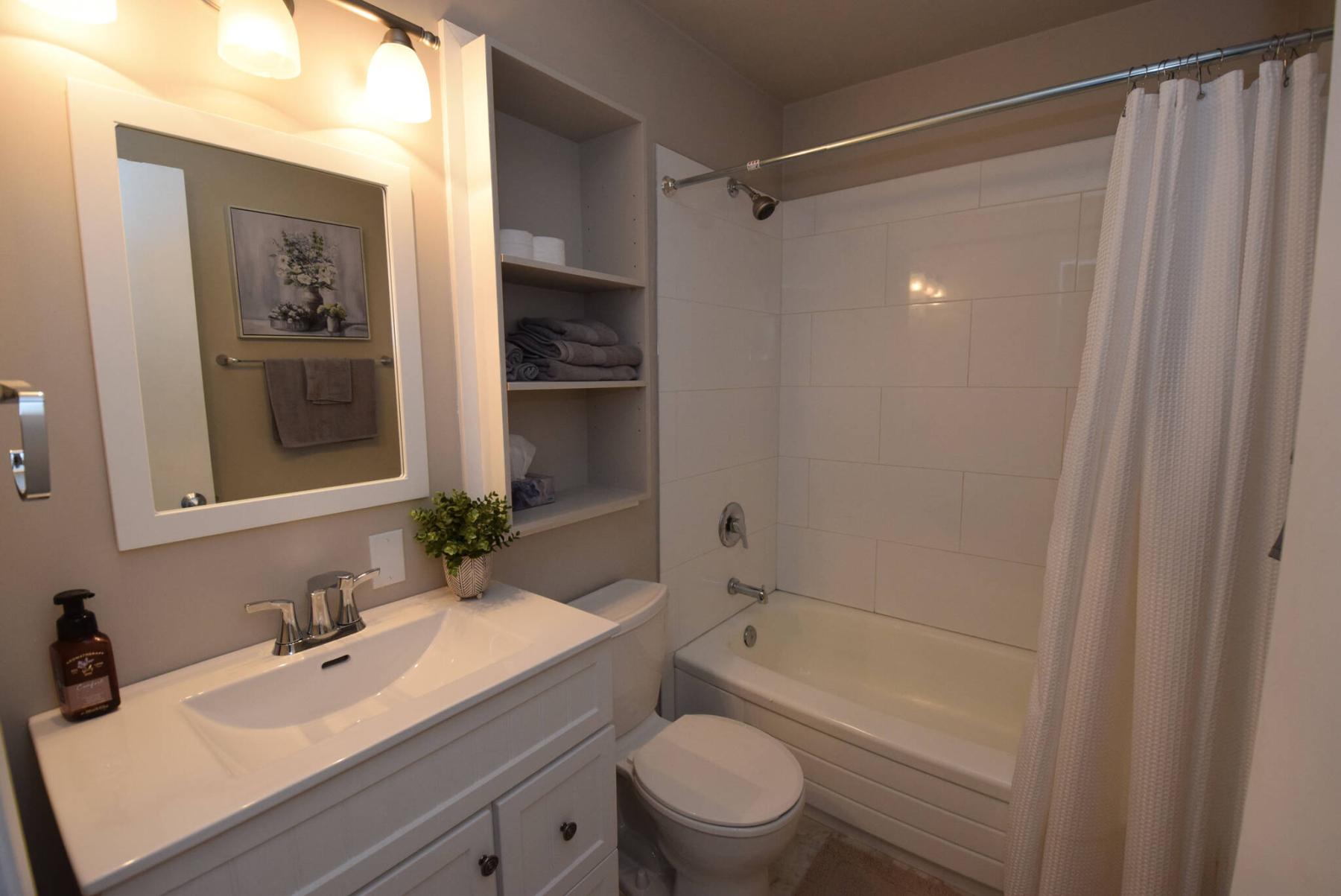 “It’s been nicely updated with a newer vanity, with contemporary mirror and faucet, as well as a newer vinyl floor and tile bathtub surround. And it’s close to the primary bedroom, which is a bonus,” Phillips says.