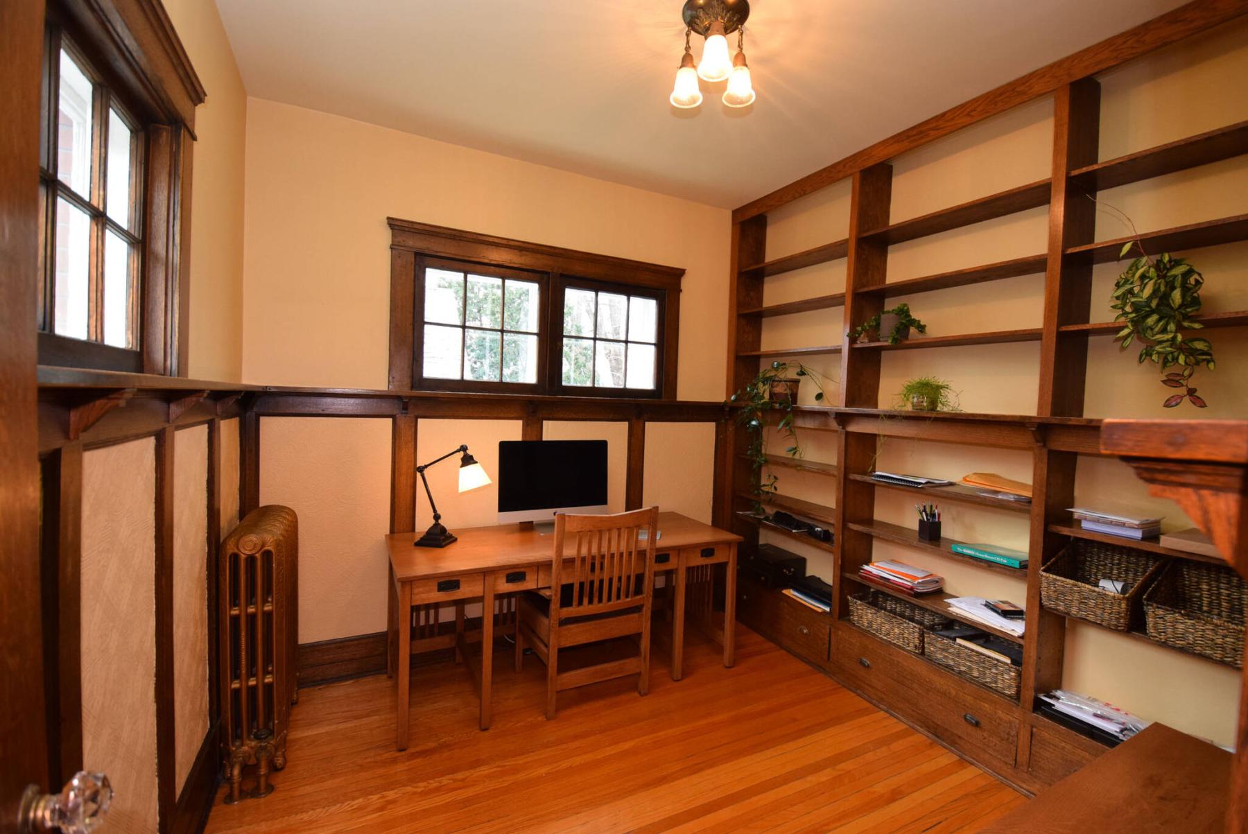 The stunning upper level and its ornate woodwork speaks to the home’s origins, when craftsmanship and artistry were king.