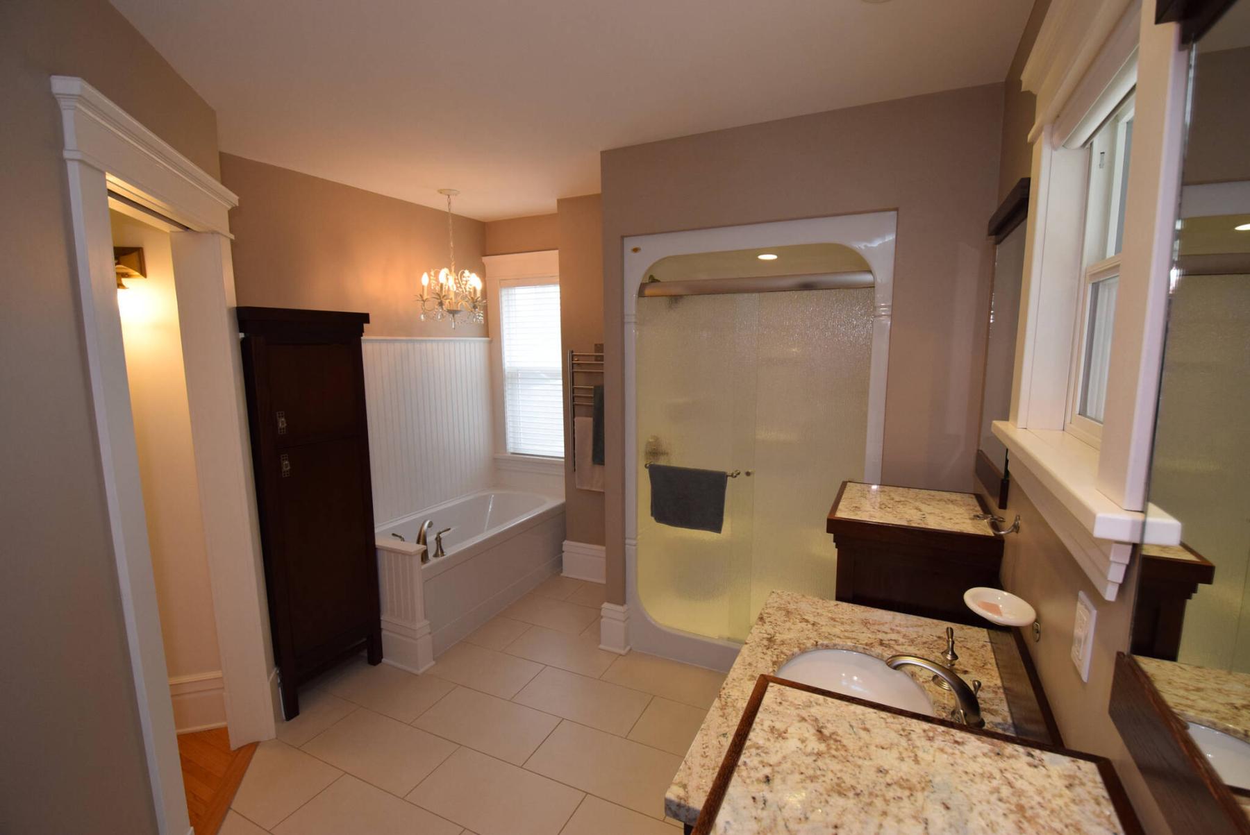 “Comfort and convenience shine upstairs with four large secondary bedrooms, a spacious primary bedroom with huge bay window and an upgraded main bath with a heated tile floor, walk-in shower and soaker tub,” Fazekas says. “The bathroom also holds a laundry area.”