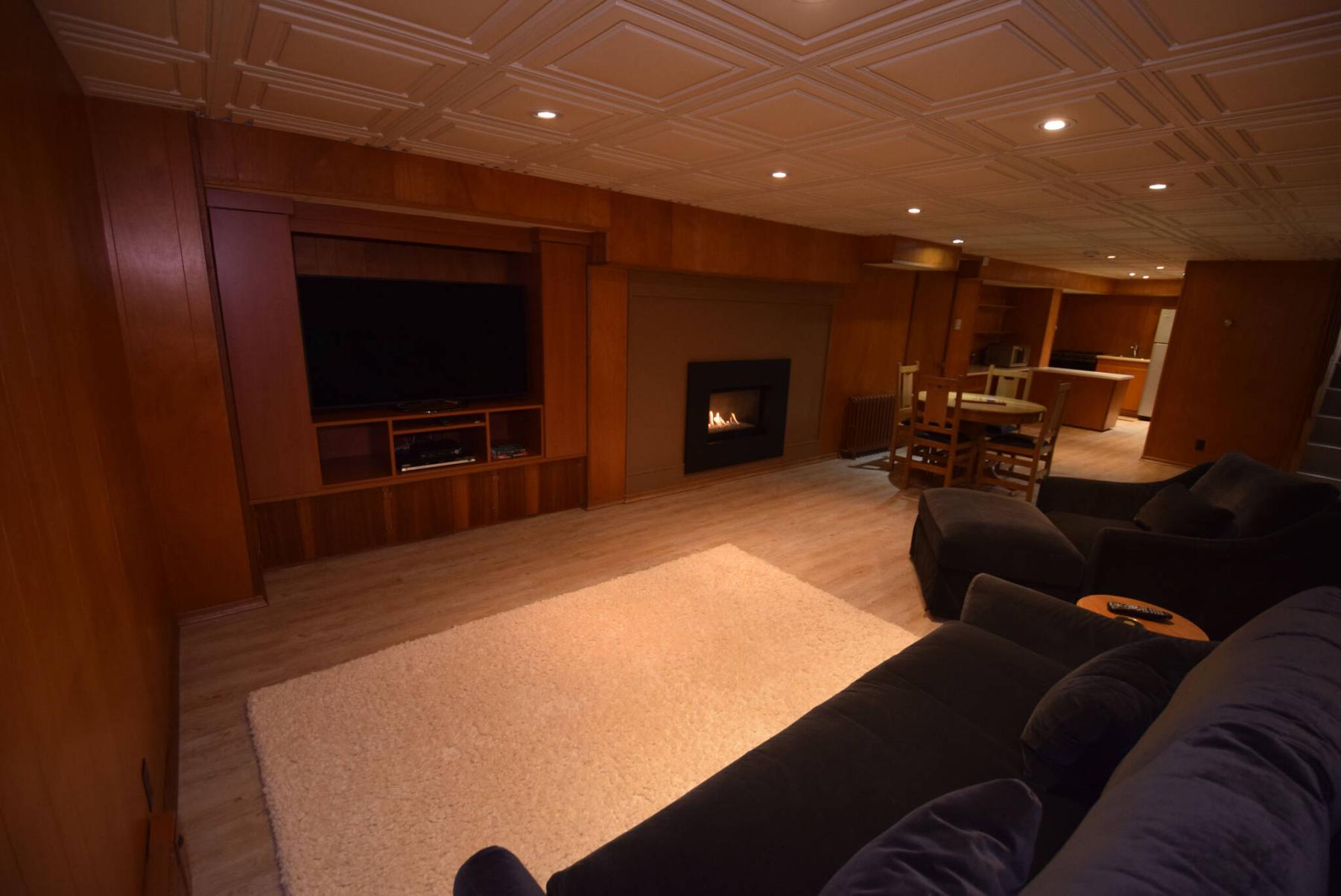“It measures in at 29.7-by-17 feet,” says Fazekas. “In the past, it was a games area, but right now it’s a potential-filled space that would make for a great teenager hangout or primary bedroom. The updated lower level offers a rec room with fireplace, games area and kitchen.”