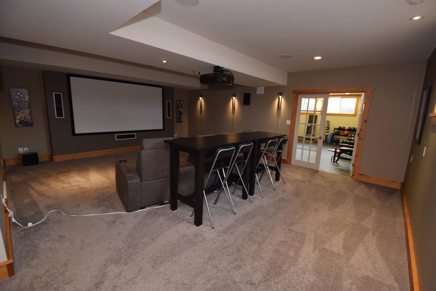 A rec room with amazing media area and gym are the main attractions of the addition’s fully finished lower level.