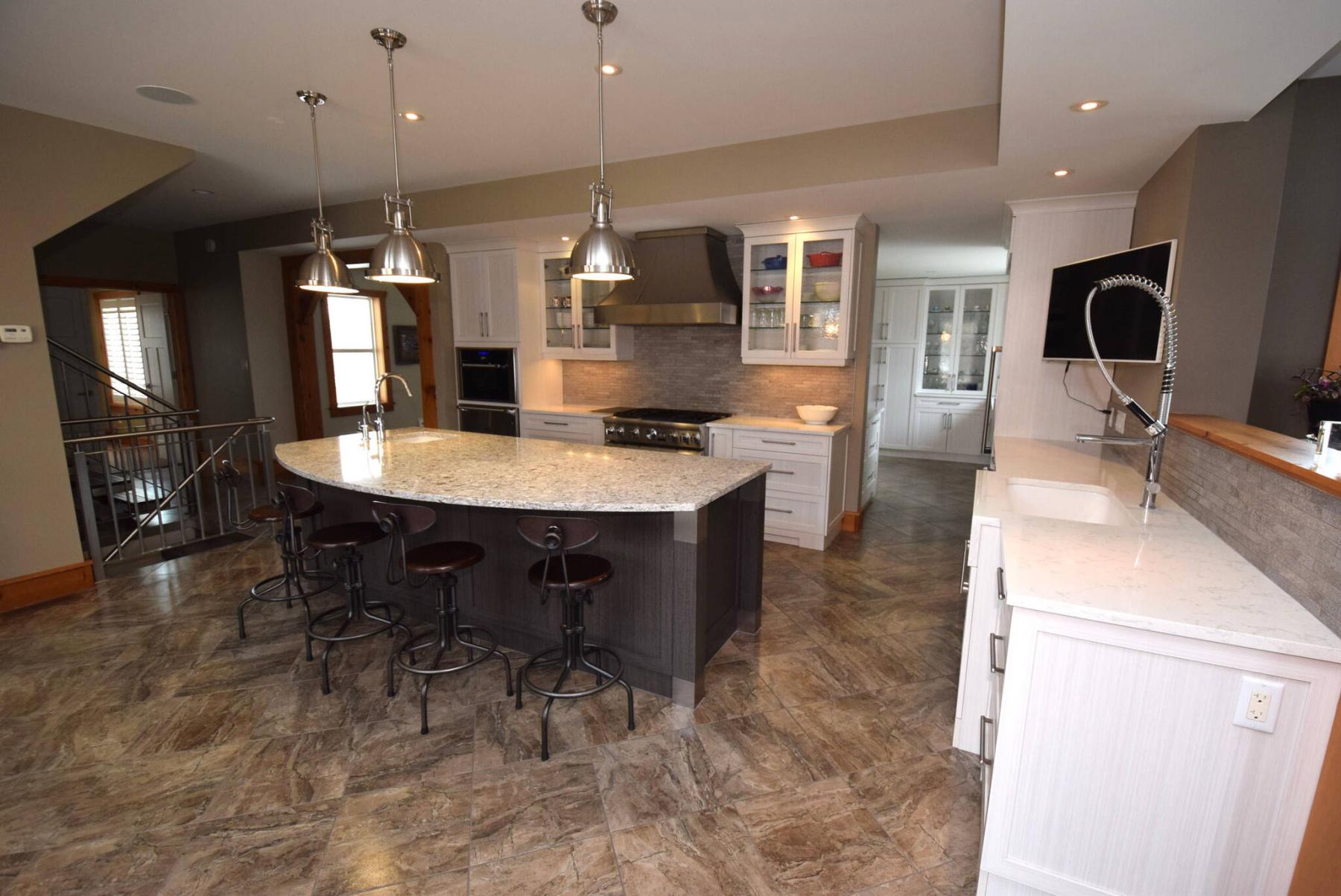 “It’s state-of-the-art with a large breakfast island, quartz countertops, two-tone cabinetry, high-end Thermador appliances and a huge walk-through pantry. The tile floor looks incredible, too.”