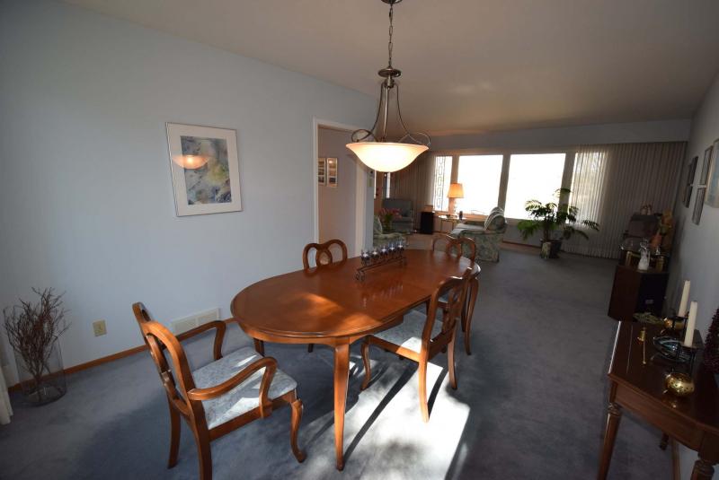 The huge, L-shaped living room/dining room is perfect for entertaining.