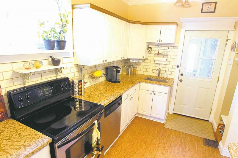"You get the best of both worlds here," he said. "All the previous owners have made an effort to retain most of the home's original character, which isn't always the case. (Medium brown) cork flooring takes you into a kitchen that's been nicely updated with (tan) marble countertops, cork flooring, French white cabinets, a white subway tile backsplash and an undermounted stainless-steel sink. It's not your typical turn-of-the century kitchen because it's bright and there's plenty of room to move."