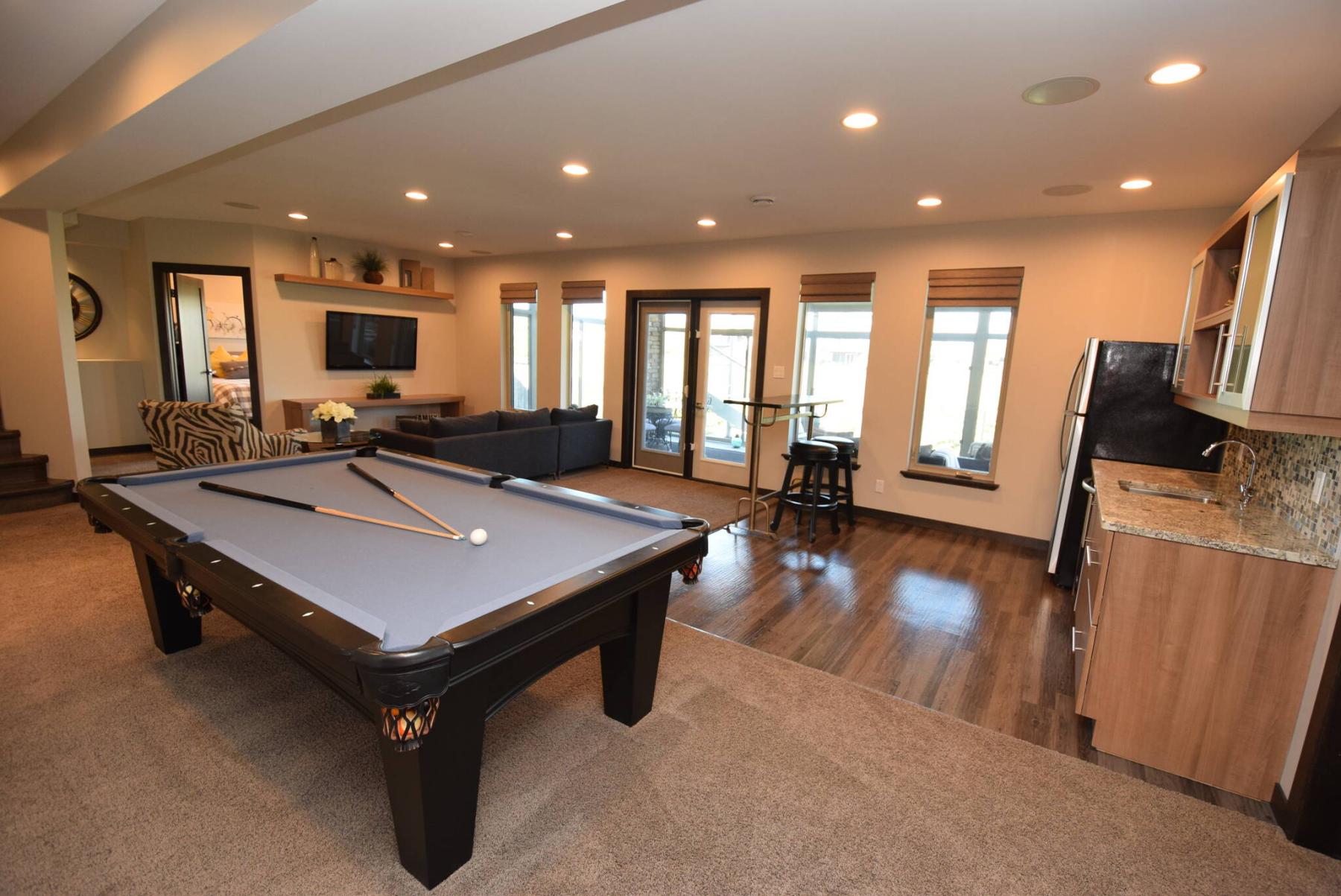 The walk-out lower level’s games/media area, with its wetland view and access to a screened-in sunroom/patio, is a cut above.