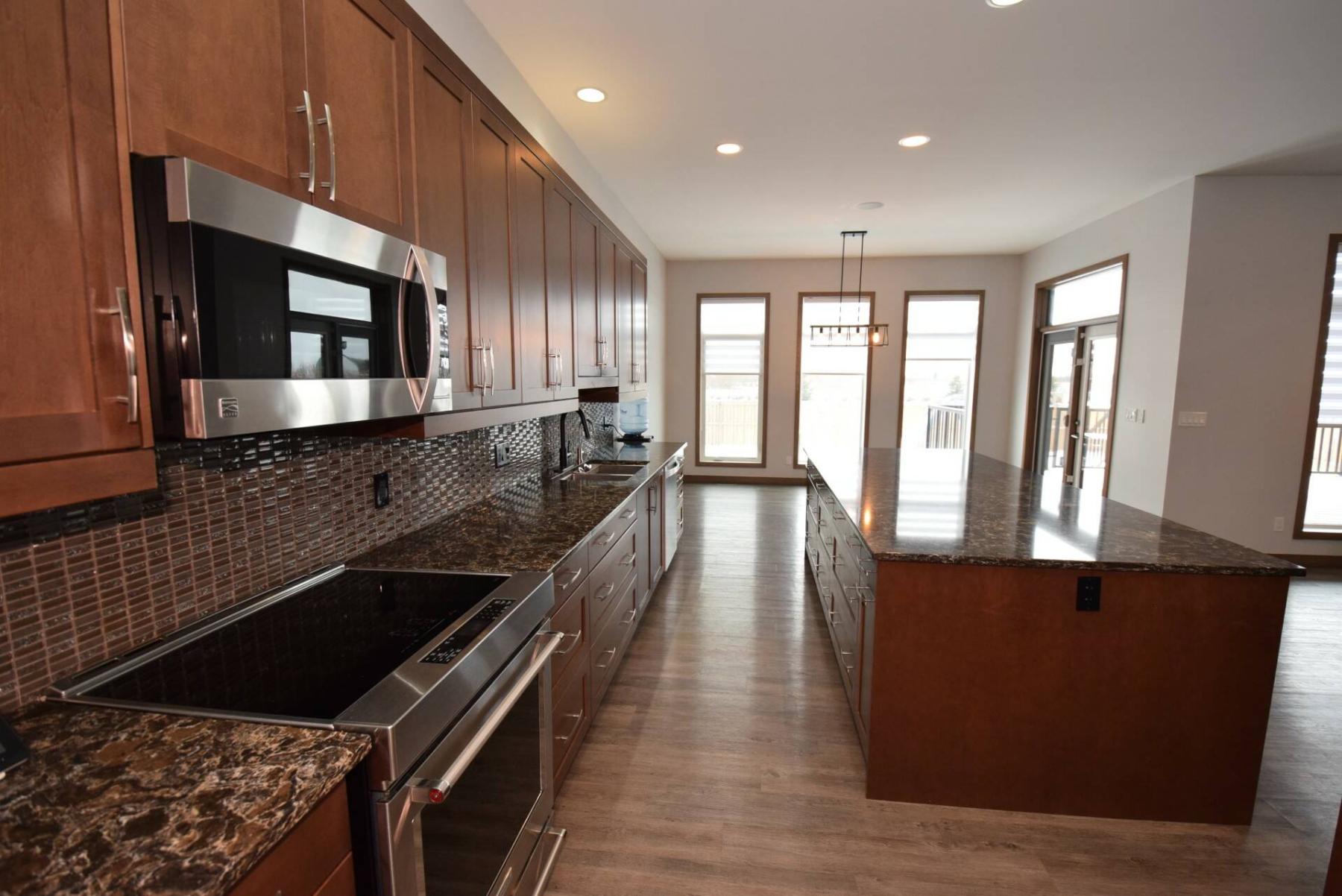 “Resident chefs will love the kitchen with its huge island, granite countertops, soft close maple cabinets, stainless steel appliances, gas range and ample storage,” he says. “The dining area is in a perfect spot, next to three windows and a patio door that leads out to the covered deck and amazing backyard.”