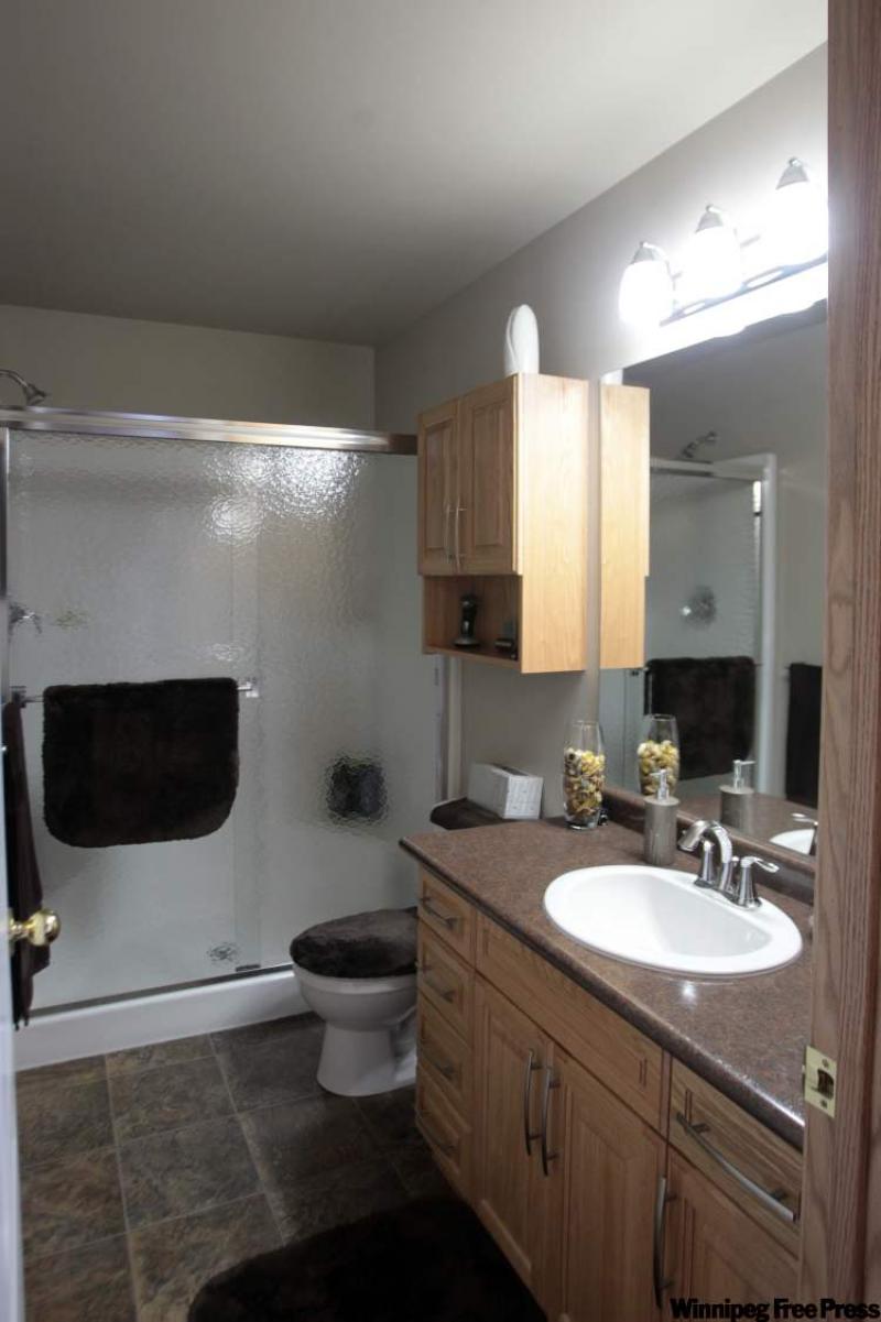 "There's very good separation down here," Thiessen says. "It works because there's so much space. Each area is a good size. The finishes (taupe short shag and light and dark shades of brown) are also excellent, and there's also loads of storage space under the stairs and in the mechanical room."
