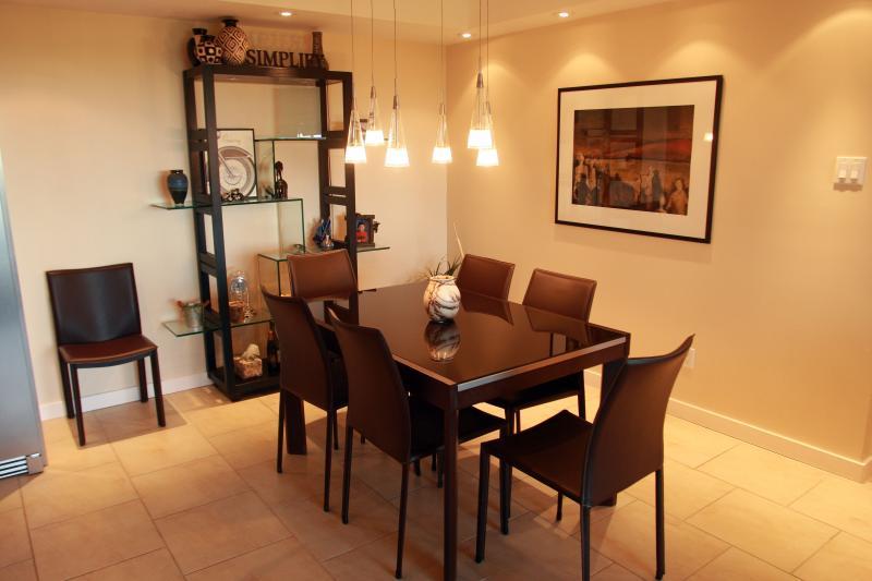 "It's a great area -- I love its openness and the incredible view," says Laura. "And the balcony is private and huge. The remodelling has made for a unit that features a great use of space. To add to that, the finishing quality throughout is excellent -- the Zebra wood veneer, natural maple cabinetry, beige ceramic flooring in the kitchen and living room, and faux vinyl bamboo flooring in both the powder room and ensuite. There are also all kinds of cabinets and counter space, something you don't see in a lot of otherwise well-designed condominiums."