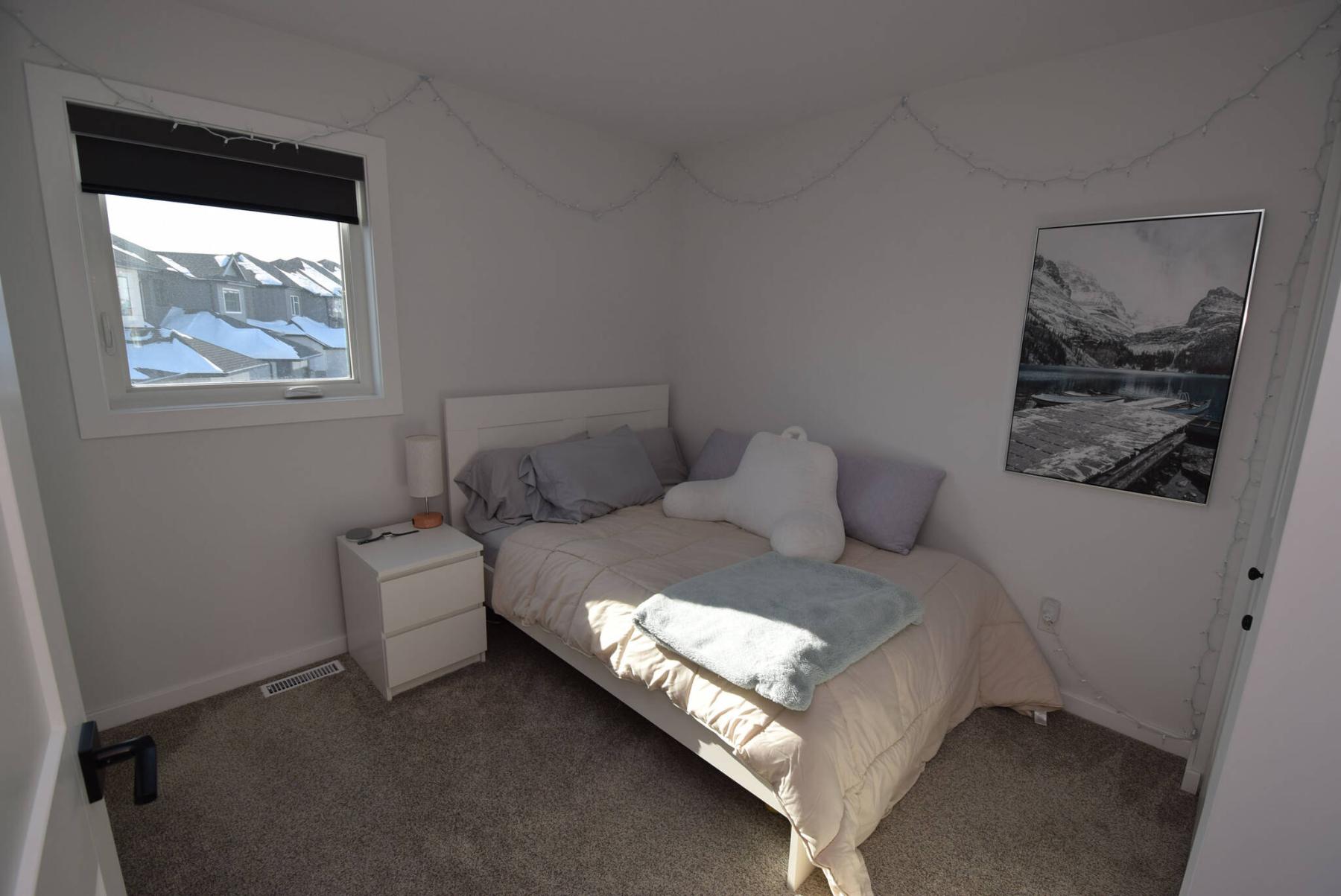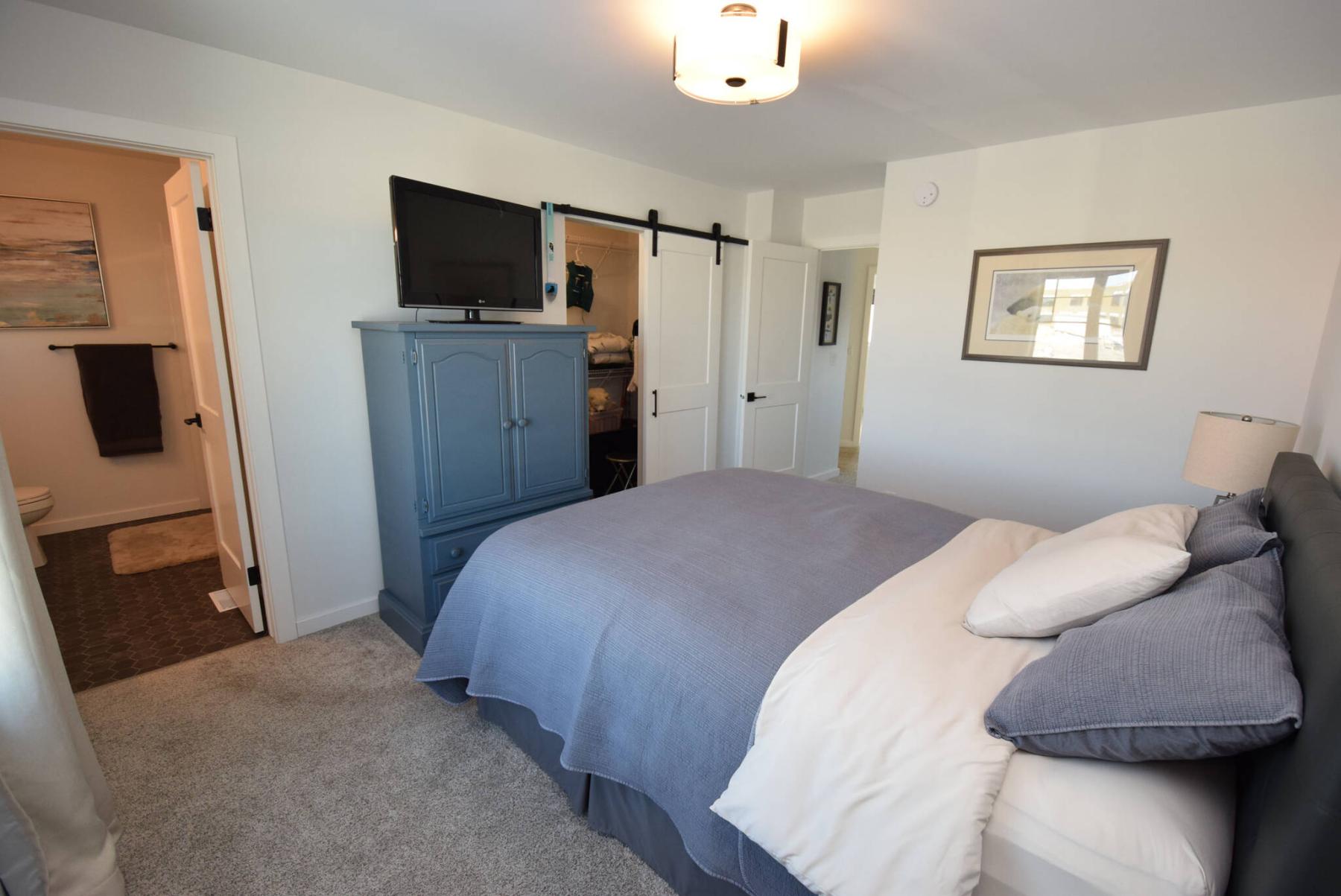 “It has a lot of beautiful little design touches that make it a special place to retreat to at the end of a busy day — a large walk-in closet with barn-style door with black hardware, a big window that lets in lots of natural light and plush taupe carpeting. And the ensuite is gorgeous with its walk-in shower, white vanity with matte-grey quartz countertop and large window.”