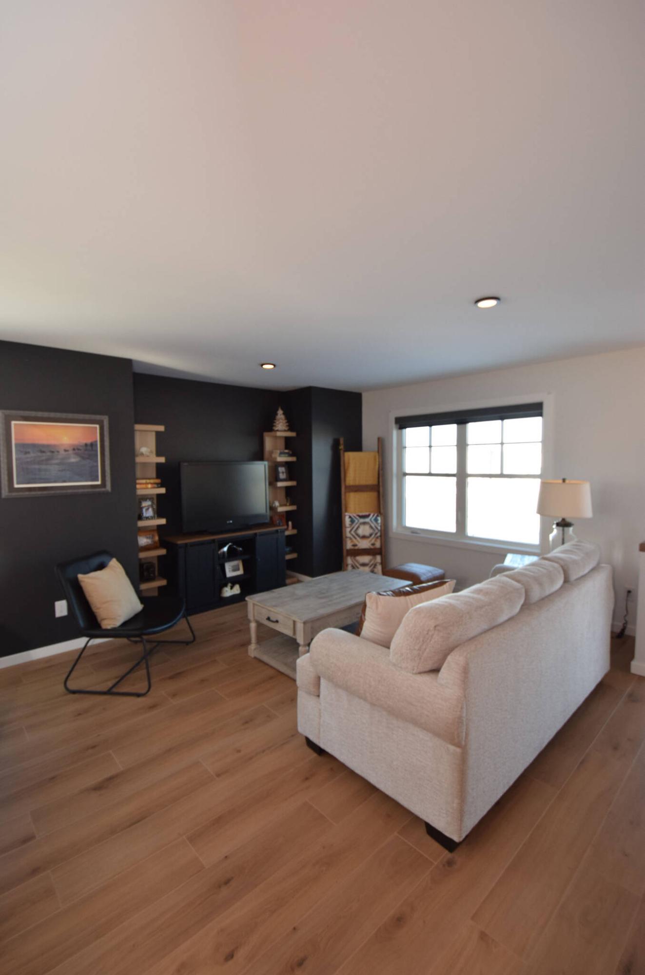 The variation of finishes in the inviting, open-concept main living area is exceptional.