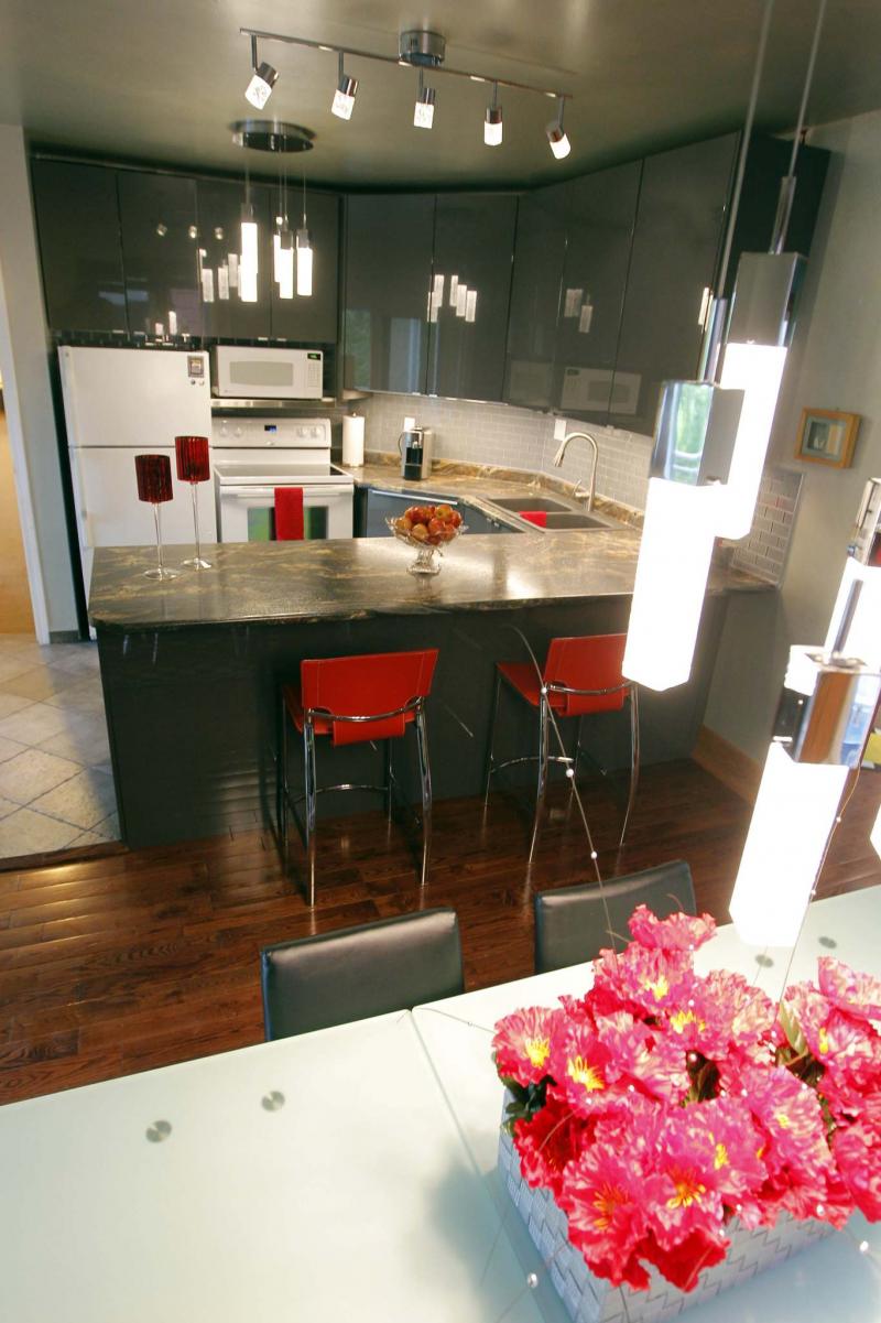 "It’s a beautiful space that features a wealth of high-gloss silver cabinets, high-end laminate countertops, (grey-tinted) glass-tile backsplash, heated (taupe) tile floors, under-cabinet lighting, kick (central vac) dustpan and newer appliances," she said. "It’s as functional as it is beautiful."