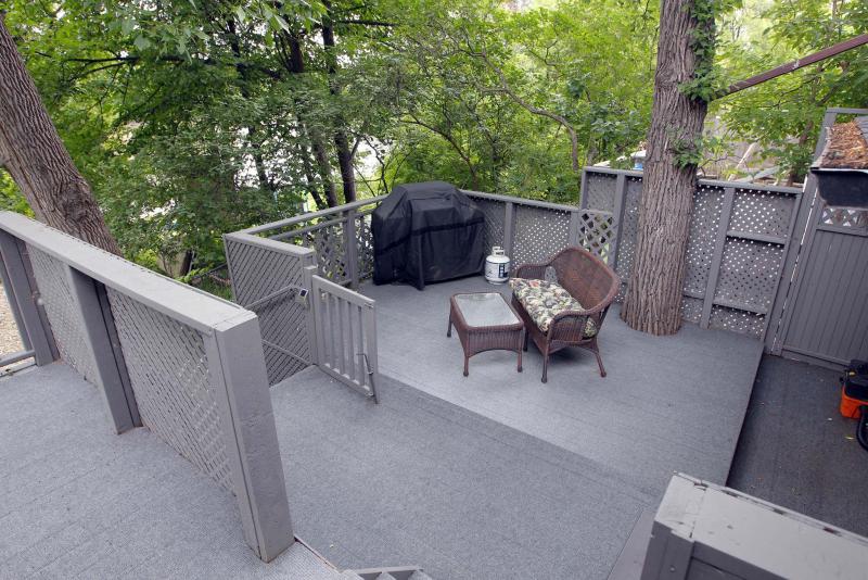 "It takes you out back to a two-tiered deck (with solar lighting) that overlooks the gorgeous, landscaped back yard and river. You can barbecue and dine on the lower level of the deck, and then sit up on the upper level overlooking the yard and river while you enjoy a drink, and company. The views are just incredible."