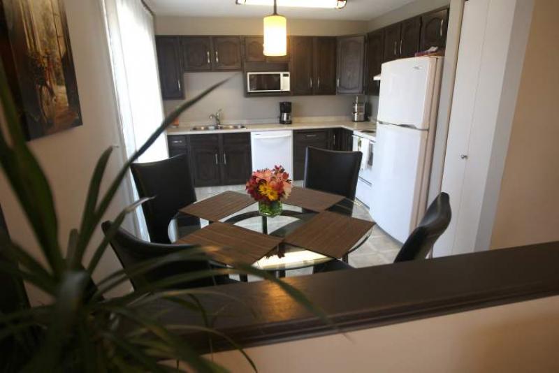 It's also a home that's very contemporary thanks to updates that include a grey colour palette (newly painted), dark-stained oak cabinets, new vinyl flooring and pristine oak hardwoods that run through the dining room and living room. The kitchen is particularly functional with room for a table for four, a door to a backyard patio, tons of cabinet space -- and ample room to move.