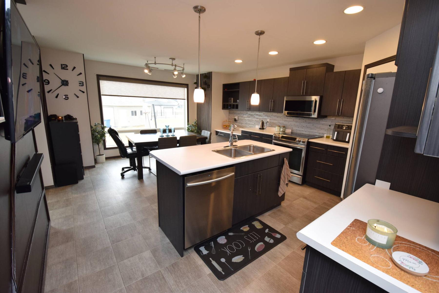 “It’s one of the biggest, brightest kitchen/dining areas you’ll find anywhere,” says Reimer. “A huge window on the back wall allows tons of natural light to pour in, while a fantastic layout makes it easy to move around freely. The kitchen offers a mid-sized island, large corner pantry and tons of cabinet and counter space. And there’s room for a table for six by the window.”