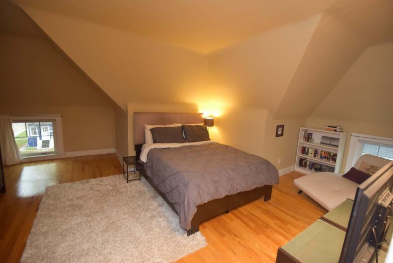 "All the space upstairs is well-used. There’s a convenient in-suite laundry, a balcony that gets afternoon and evening sun, a den/bedroom and a big, loft-like master suite with two windows, maple flooring and space for a chaise lounge and TV," Neumann said. "It’s a relaxing, treetop retreat."