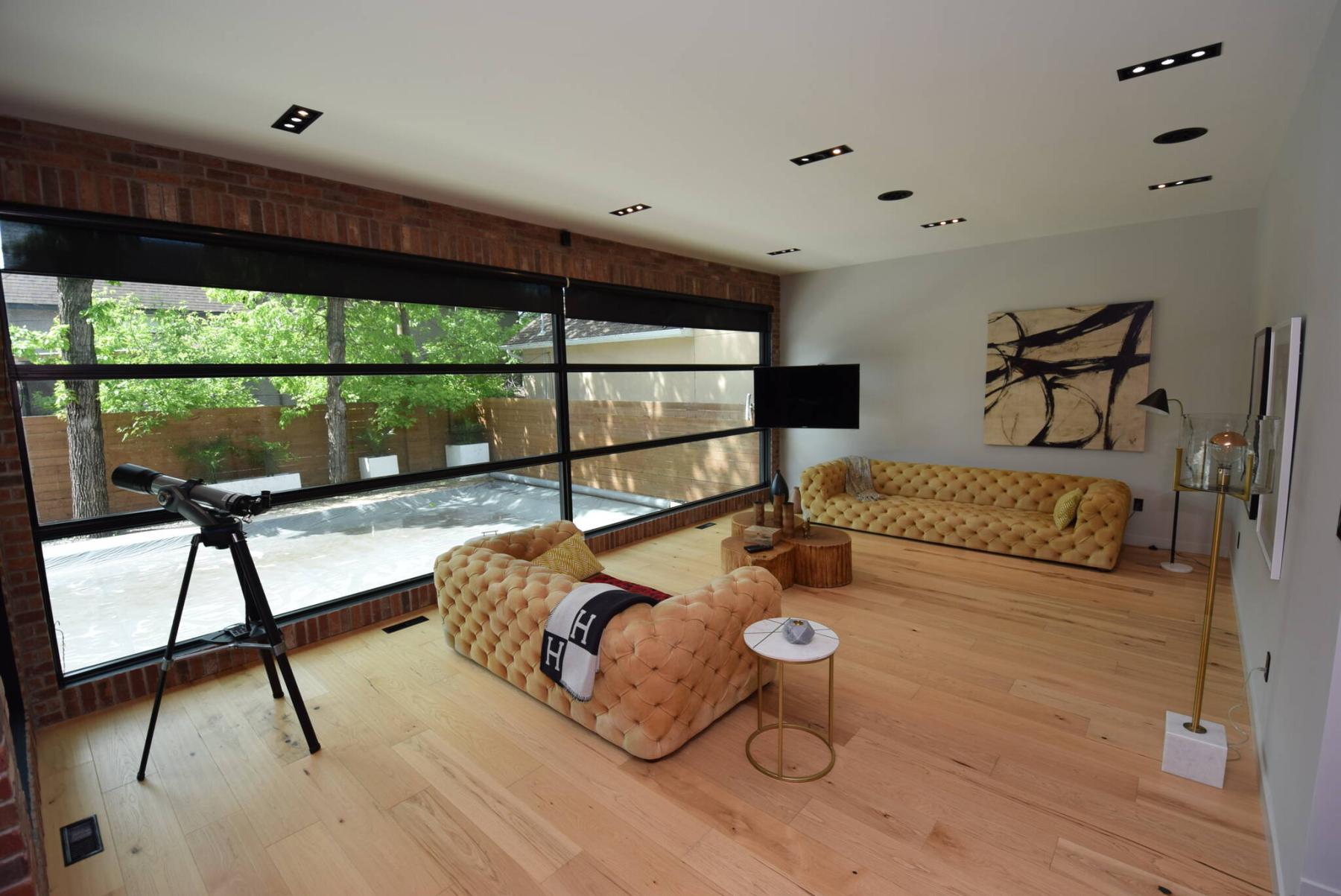 Meanwhile, large, black-trimmed floor-to-ceiling windows add character and light.