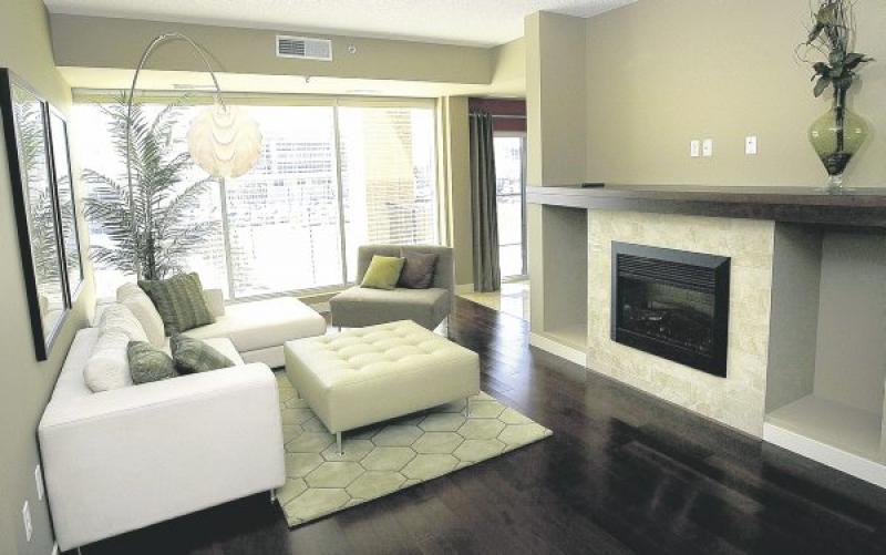 "We're proud of the way the suites have been designed. This one-bedroom unit (a 570-square-foot display model) is a very neat design. It's angular, with a huge storage closet at front, big sitting area with fridge, sink and cupboards, and a large bedroom that's adjacent to a large, user-friendly ensuite," she said.